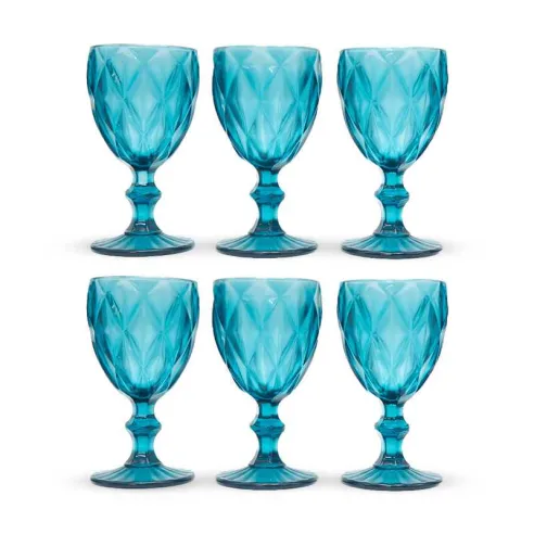 Copa de Vino de Vidrio de 240 Mililitros de Color Azul, Set de 6 Unidades TIPS KFG-006BL/HJ